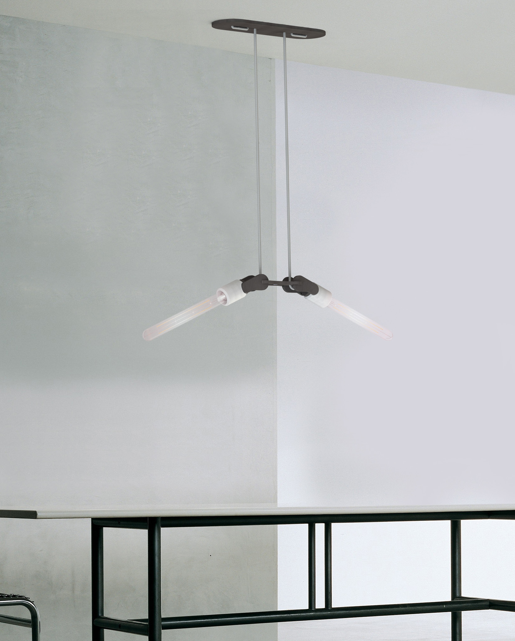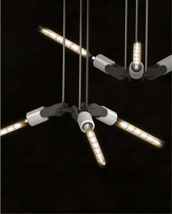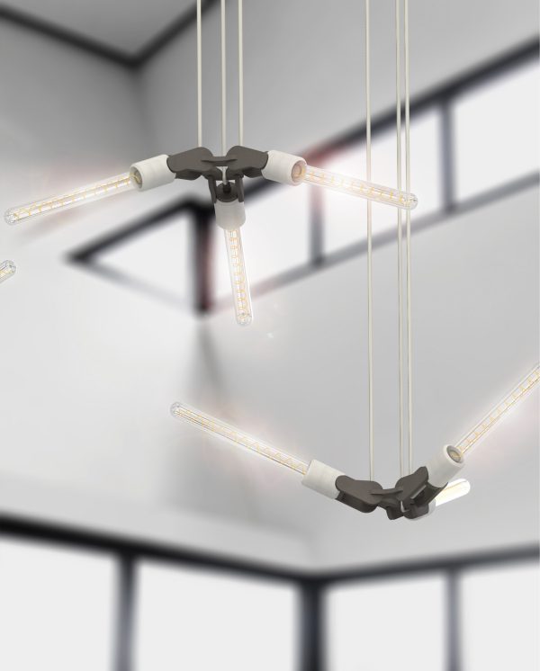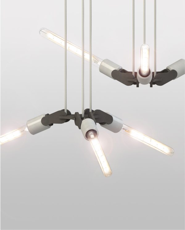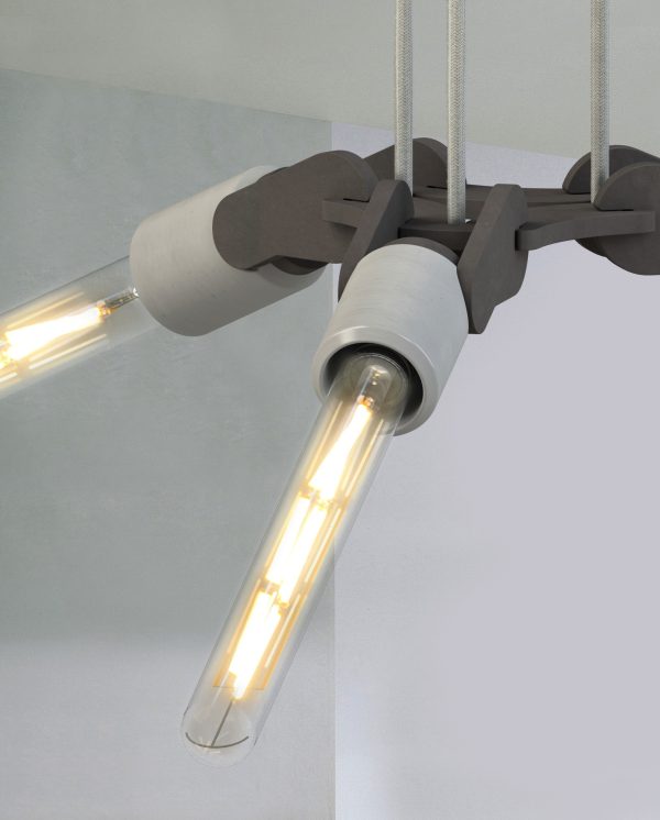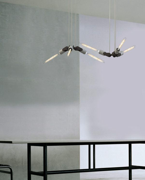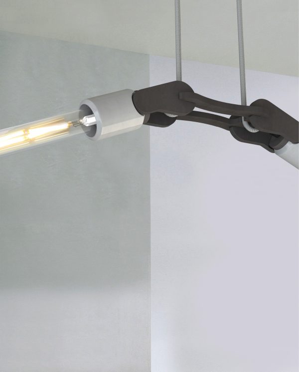 #WINGS is een stijlvolle hanglamp geïnspireerd op een vleugelslag. De armatuur kan zowel naar boven als naar beneden gericht worden, wat een extra dynamisch effect geeft. Ook de combinatie van betonnen lamphouders en zwart hardboard geeft deze hanglamp een industrieel en elegant karakter, thuis, op kantoor of in de openbare ruimte.