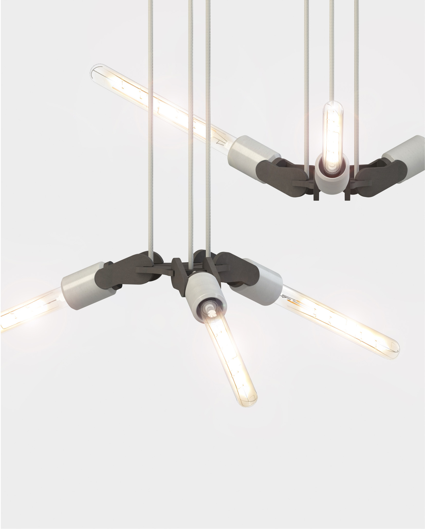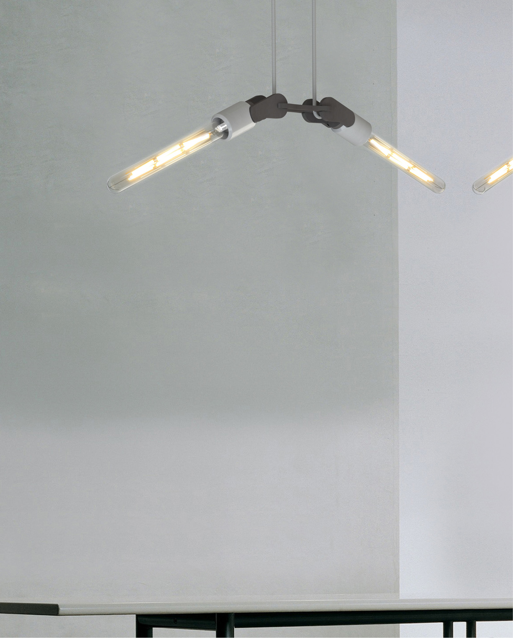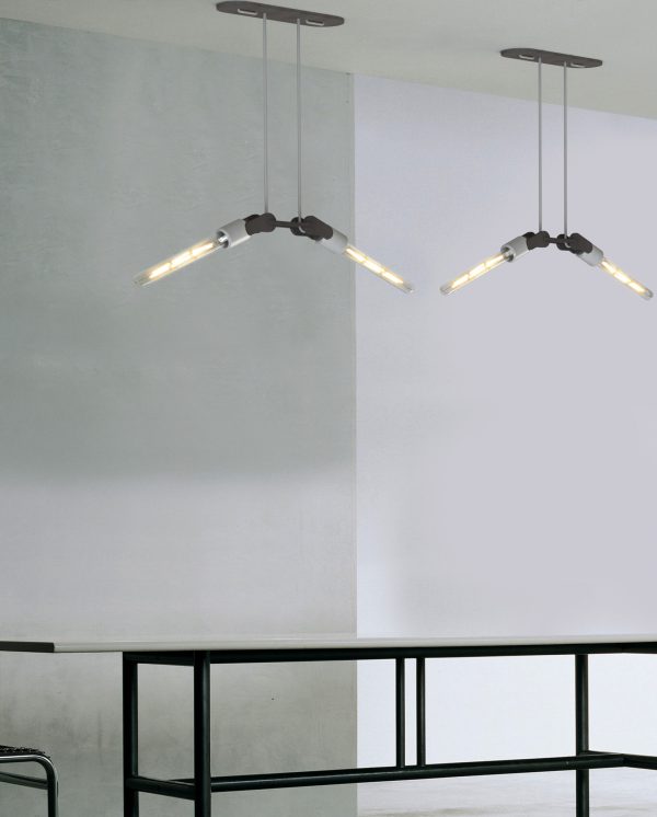 #WINGS is een stijlvolle hanglamp geïnspireerd op een vleugelslag. De armatuur kan zowel naar boven als naar beneden gericht worden, wat een extra dynamisch effect geeft. Ook de combinatie van betonnen lamphouders en zwart hardboard geeft deze hanglamp een industrieel en elegant karakter, thuis, op kantoor of in de openbare ruimte.